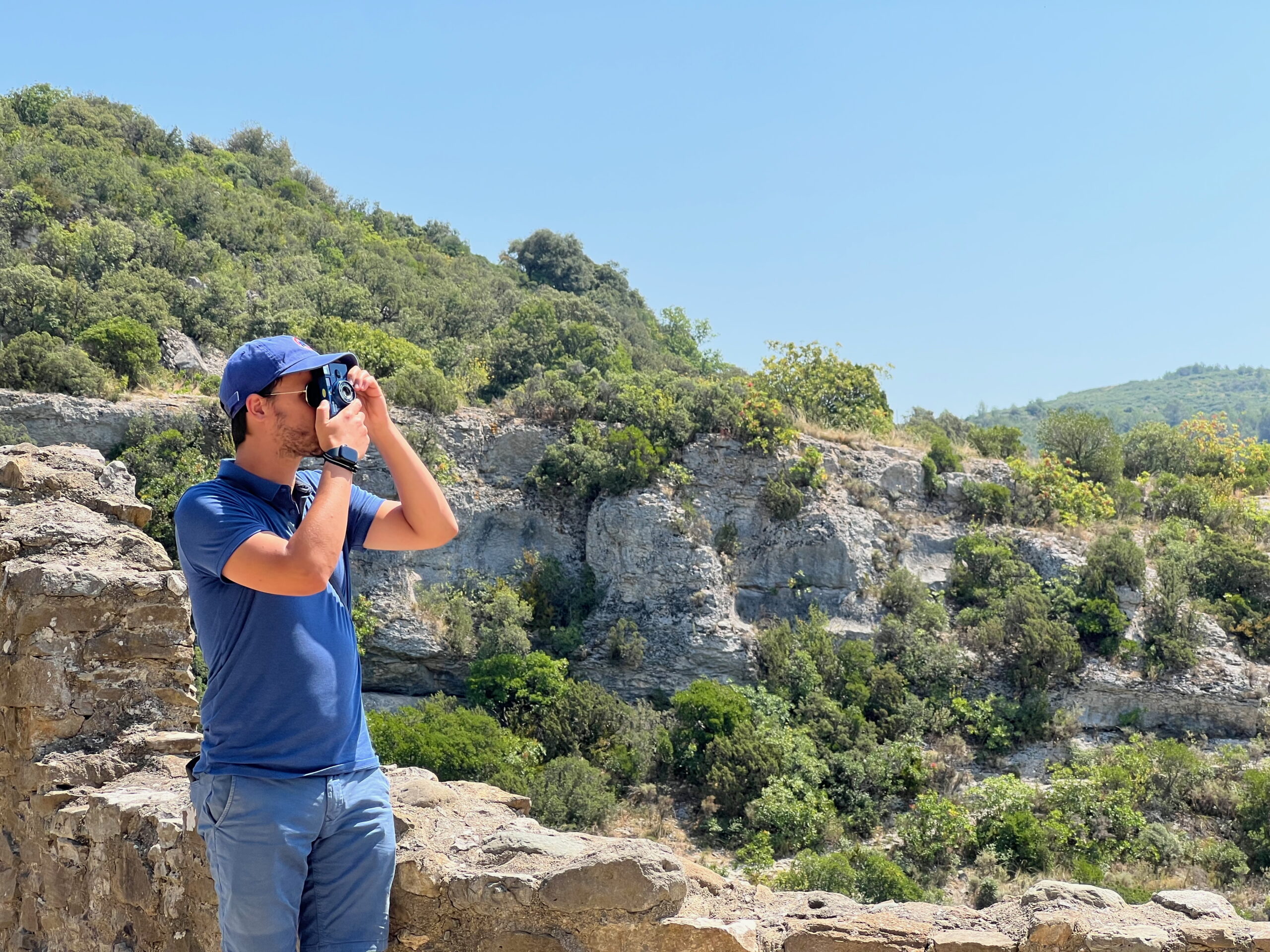 Le test terrain commence en plein cagnard, quelque part au sud de la France. Le ciel est bleu, la roche est blonde, et moi… je suis en train de shooter comme en 1982.